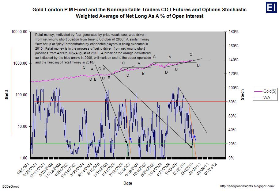 Gold London P.M Fixed and the Nonreportable Traders COT Futures and Options Stochastic Weighted Average of Net Long As A % of Open Interest