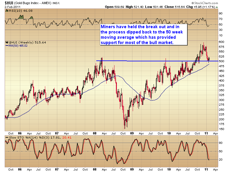 Also in the bullish column, sentiment in the sector has now reached bearish extremes. Even better is the fact that most of the sector has pulled back to long term support, and or tested a major breakout level.