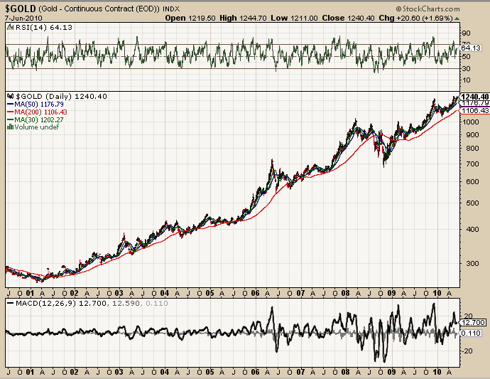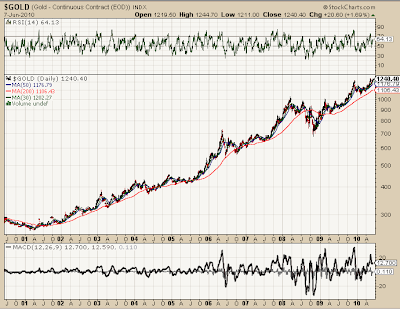 But the movements in gold only seem volatile if you are focused on day to day movements. The longer terms charts show a steadily rising trend. I choose to ride the trend as long as the fundamentals that justified the trend are intact. In the context of a bull market, corrections are a gift as weak hands transfer ownership to strong hands. This relationship only reverses at the tail end of a bull market.